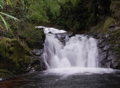 Con đường mòn đất đỏ đưa du khách đi qua khu rừng bạt ngàn một màu xanh của trúc, tiếng lá cây xào xạc lẫn trong từng cơn gió, rồi chợt bừng lên muôn vàn sắc màu của các loài hoa Đỗ Quyên. Du khách lội qua một con suối nữa là tới thác nước, điểm dừng chân cuối cùng trong chuyến tham quan.